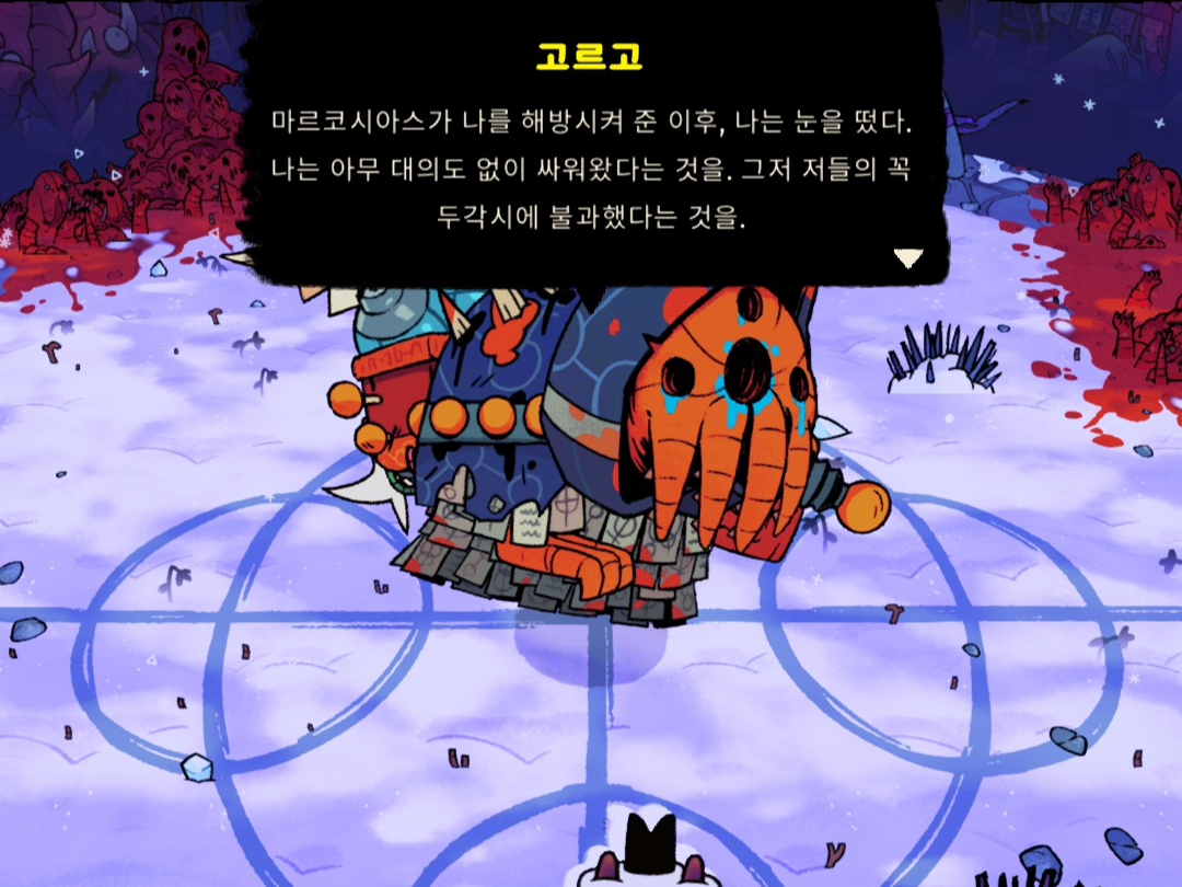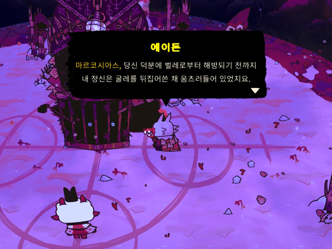 근데 레딧에서 매시브 몬스터가... 마르코시아스의 현재 결말이 마음에 든다고 하더라구요. 아마 다시 살아나는 일은 없을 거 같아서 슬프긴한데 정말 이단자다운 죽음이라 만족하네요.